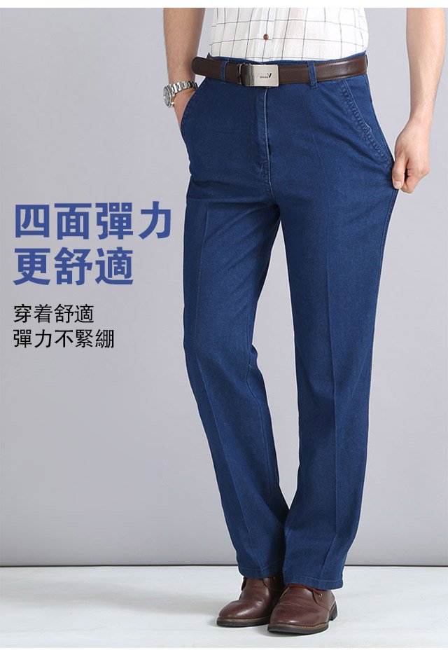 夏季薄款彈力中年男士牛仔褲